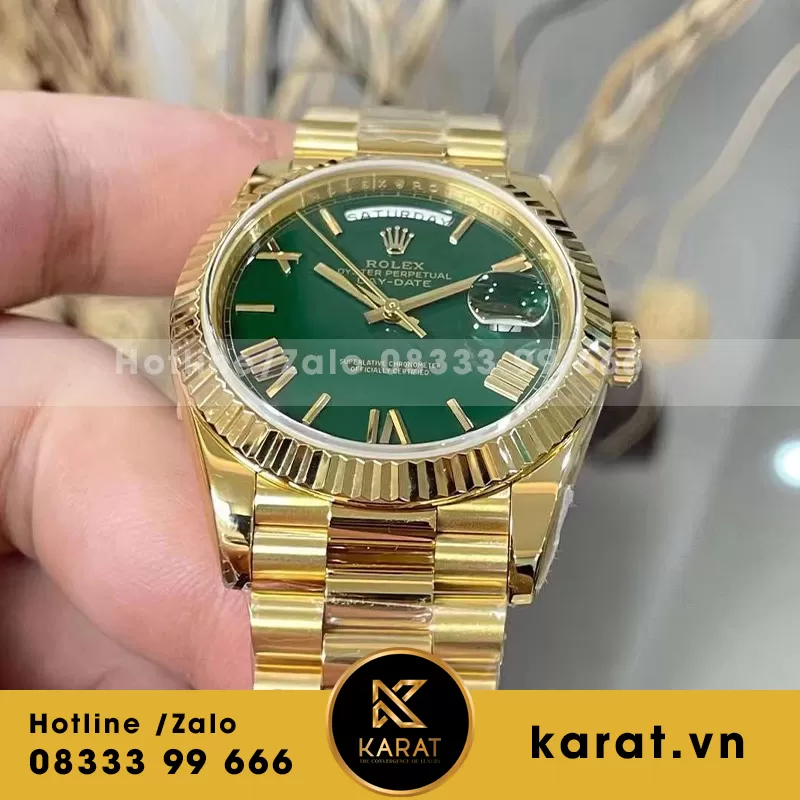Rolex daydate 228238 chế tác vàng đúc mặt xanh green dây president 200g