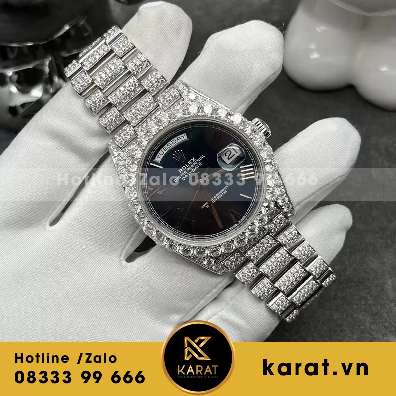 ROLEX DAYDATE 128348RBR CHẾ TÁC VÀNG KHỐI 18K KIM CƯƠNG THIÊN NHIÊN