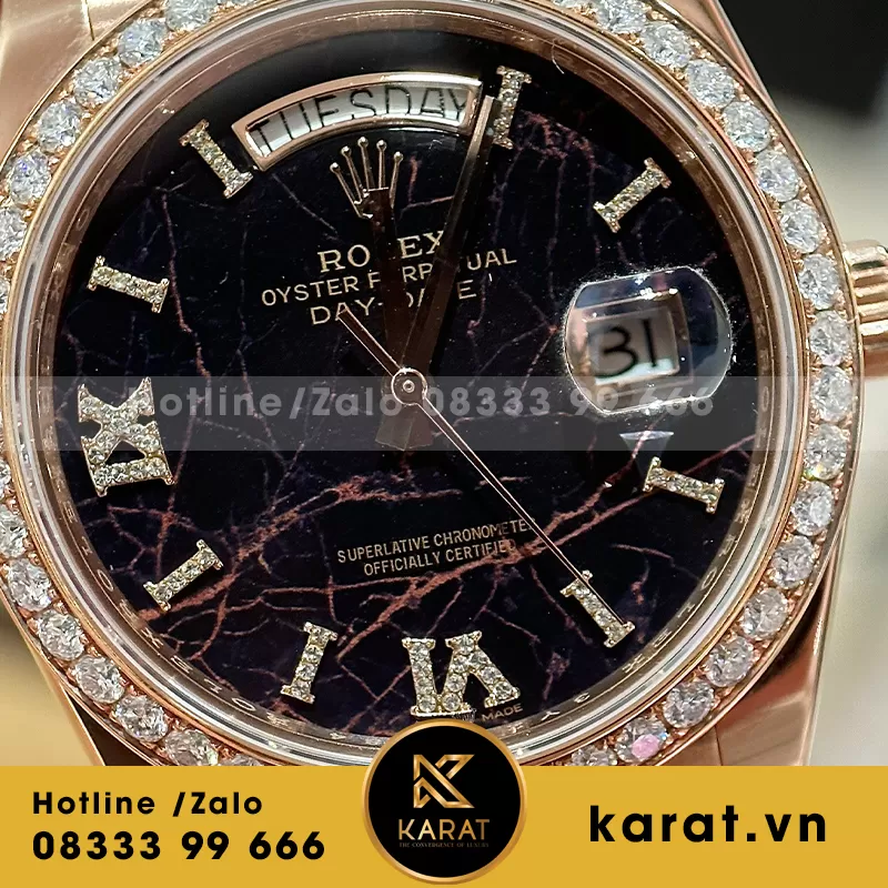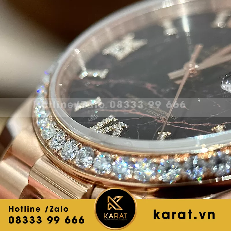 Rolex daydate mặt thiên thạch bọc vàng độ moissanite