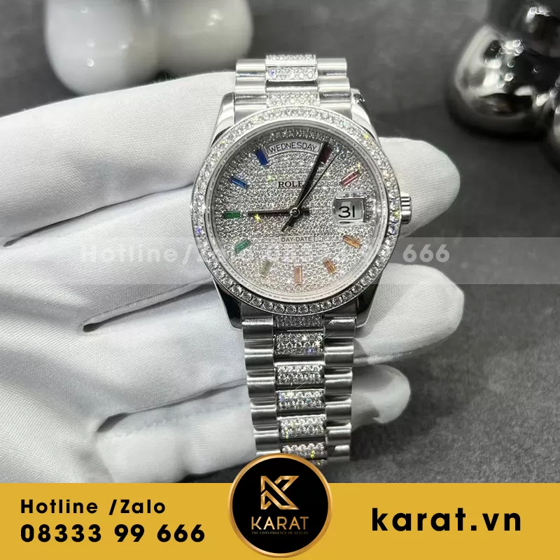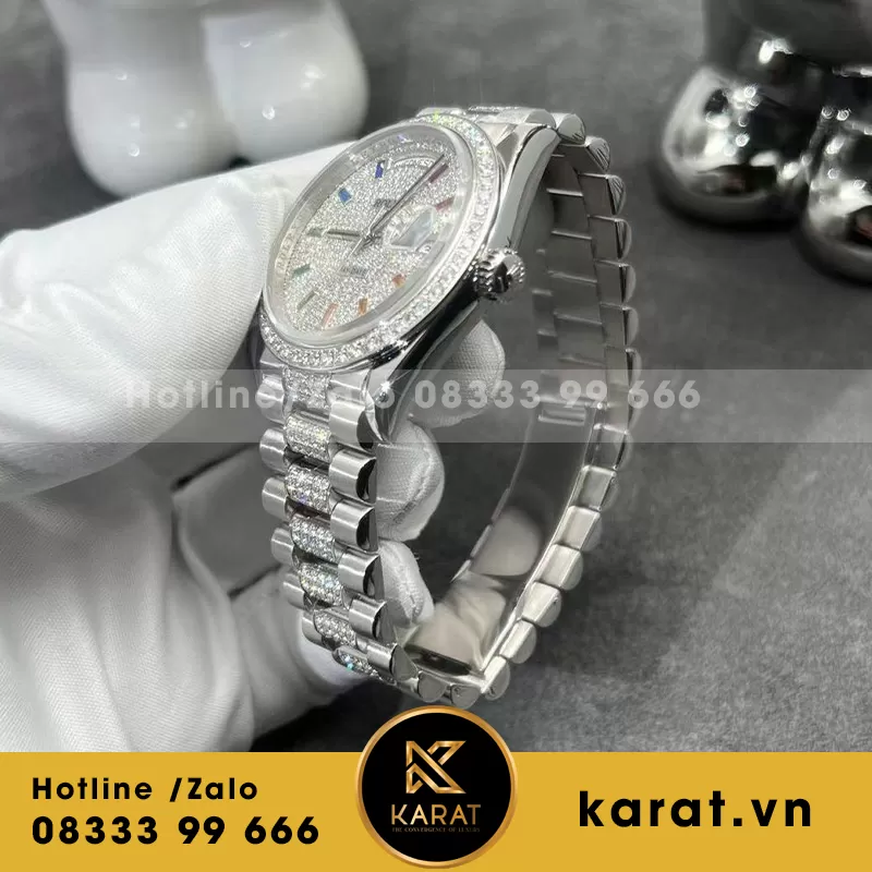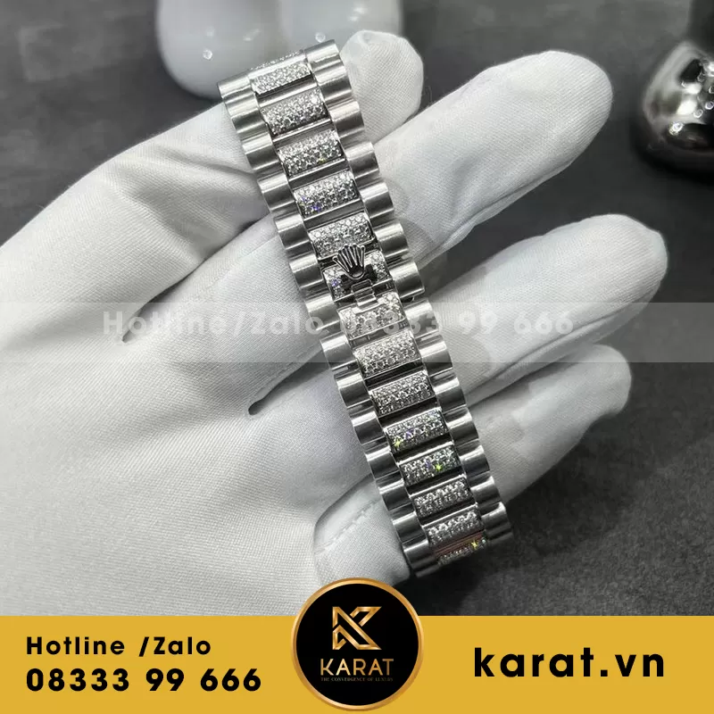 Rolex daydate vàng trắng kim cương thiên nhiên 128239 chế tác