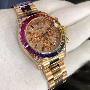 Đồng hồ Rolex Daytona Rainbow 116595RBOW diamond vàng khối 18k Ruby thiên nhiên chế tác – chất lượng hoàn hảo