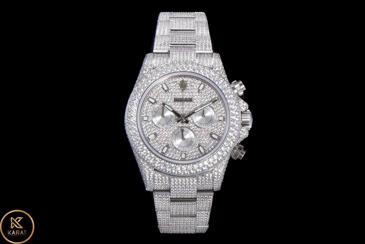 Hầu hết người tiêu dùng không đủ điều kiện để sở hữu đồng Rolex GMT-Master II Ice 116769TBR full kim cương của bản hãng. Hiểu rõ điều đó, Karat đã cho ra mắt model Rolex GMT-Master II Ice 116769TBR chế tác vàng trắng 18k đính kim cương. Độ hoàn thiện, độ sắc nét đến 99% so với hàng auth nhưng giá rẻ hơn hàng chục lần.