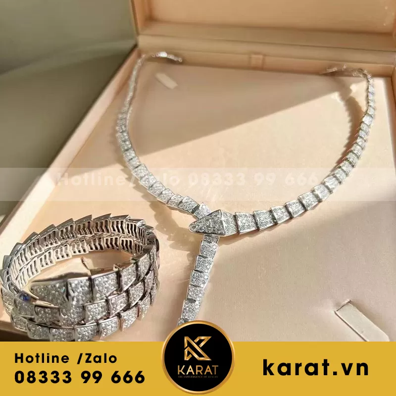 Serpenti viper bracelet and necklaces white gold full diamond